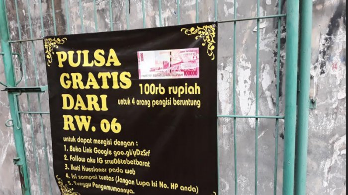 Agar Warga Isi Kuisioner, Ada Spanduk RW 06 Tebet Bagi-Bagi Pulsa Gratis