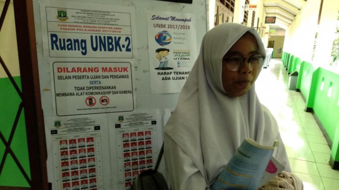 TRIBUNJAKARTA.COM, CIPUTAT - Siswi SMA Negeri 9, Tangerang Selatan, Dian Nur Utami, sempat mengalami kendala ketika mengerjakan soal ujian nasional berbasis komputer (UNBK).