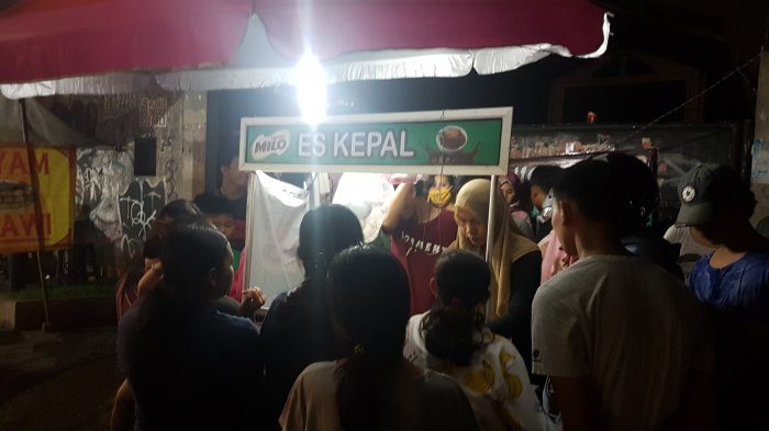 Pukul 22.00 WIB, jajanan es milo kepal tersebut masih dikunjungi oleh puluhan pembeli, yang ingin mencicipi jajanan hits masa kini.