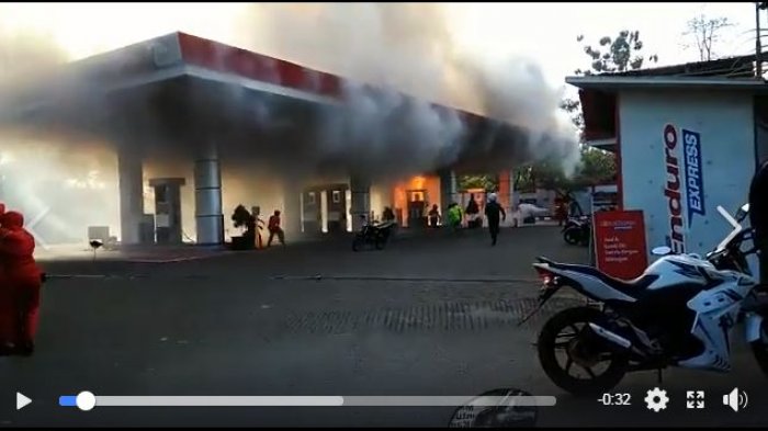 Beredar video dan potret kebakaran di wilayah sebuah pom bensin di media sosial.