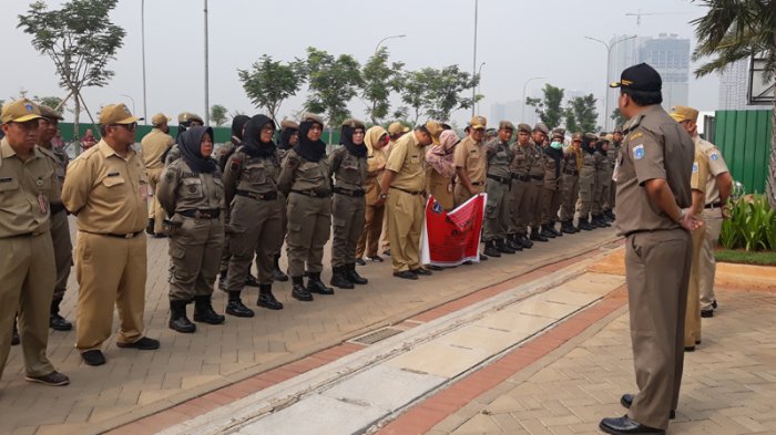 TRIBUNJAKARTA.COM, PENJARINGAN - Sebanyak 300 Satpol PP dilepas Gubernur DKI Anies Baswesan untuk menyegel bangunan di pulau reklamasi, Jakarta Utara, Kamis (7/6/2018) pagi.