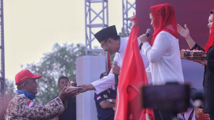 Ia pun mengajak seluruh peserta kampanye akbar untuk menyanyikan lagu selamat ulang tahun untuk Sang Presiden.