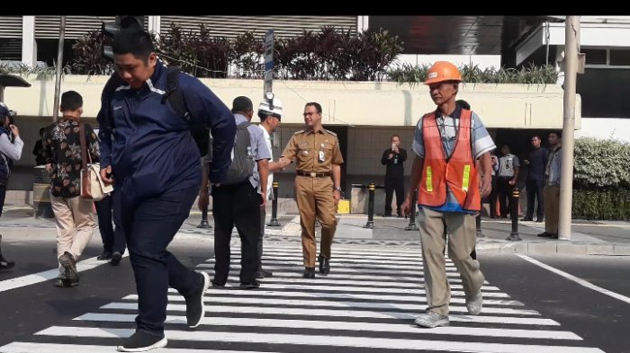 TRIBUNJAKARTA.COM, MENTENG - Pada hari pertama penggunaan pedestrian light controlled crossing atau pelican crossing di Jalan MH Thamrin, Menteng, Jakarta Pusat, masih banyak pejalan kaki yang belum paham.