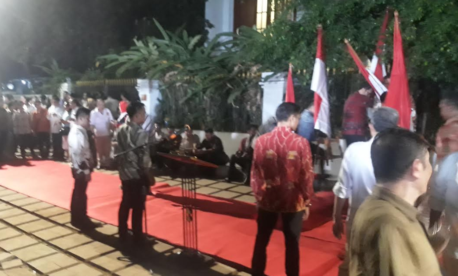 TRIBUNJAKARTA.COM, KEBAYORAN BARU - Karpet merah terbentang sepanjang depan kediaman capres Prabowo Subianto di Kertanegara, Kebayoran Baru, Jakarta Selatan.