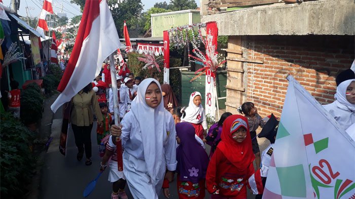 TRIBUNJAKARTA.COM, JAGAKARSA- Warga RW 02 Srengseng Sawah, Jagakarsa, Jakarta Selatan mengadakan parade berkeliling sekitar permukimannya merayakan HUT ke-73 kemerdekaan RI.