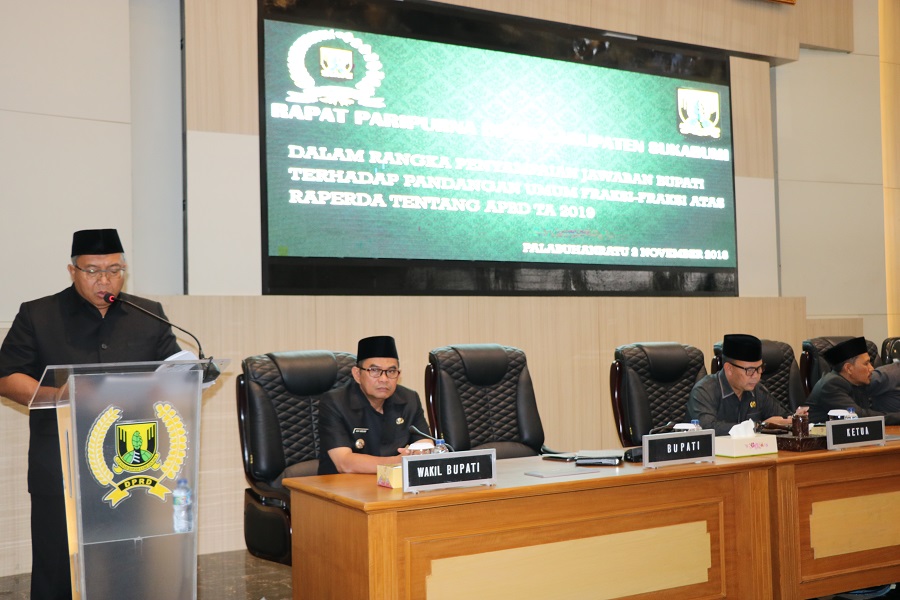 Penyampaian itu dilakukan di rapat paripurna gedung utara DPRD Kabupaten Sukabumi, belum lama ini.