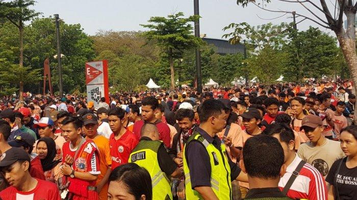 Beberapa jam sebelum pertandingan dimulai, ribuan suporter Persija Jakarta alias The Jakmania mulai memadati area komplek SUGBK.