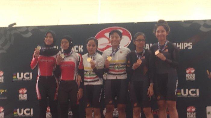 Sri kalah cepat dari pebalap Malaysia saat turun pada nomor 3000 meter individual pursuit di Jakarta International Velodrome, Jumat (11/1/2019).