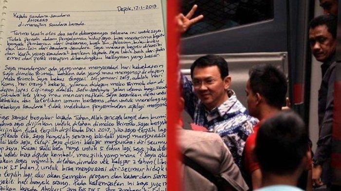 Seminggu jelang kebebasannya, pria yang sebelumnya kerap disapa Ahok itu menulis surat dari balik rutan Mako Brimob, Kelapa Dua, Kamis (17/1/2019).