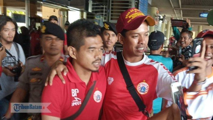 Pemain Persija Bambang Pamungkas atau yang biasa disapa BP ini langsung diserbu Jakmania saat baru keluar pintu kedatangan Bandara Hang Nadim Batam, Selasa (29/1/2019).