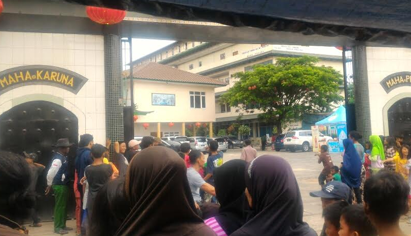 Sekira ratusan orang yang terdiri dari anak-anak, ibu-ibu dan lansia duduk di depan vihara menunggu pembagian angpao yang diharapkannya.