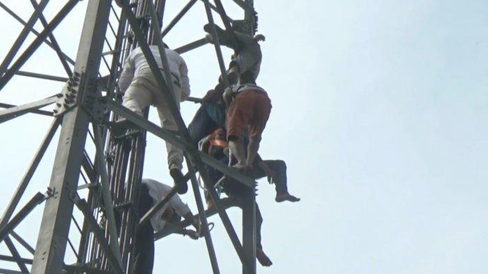 Bujukan warga berulang kali gagal. Hingga petugas membawa ibu kandung H agar merayu turun dari tower.