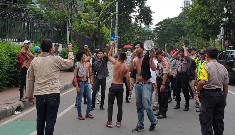 Namun, usaha mereka sia-sia lantara sejumlah petugas kepolisian dengan sigap mencegah aksi tersebut.