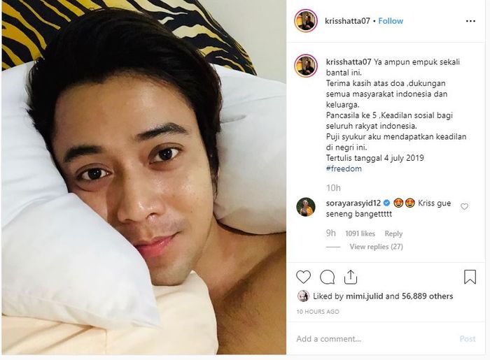 Unggahan Kriss lantas menuai banyak komentar dari netizen.