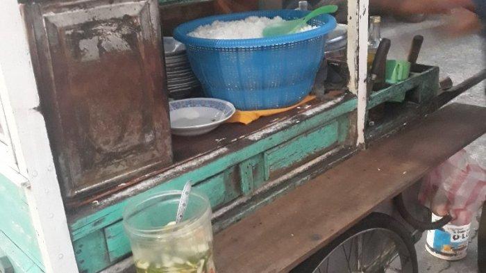 Agus, berjualan dengan menggunakan gerobak berwarna hijau putih di samping Century Jalan Wahid Hasyim, seberang Hotel Cemara.