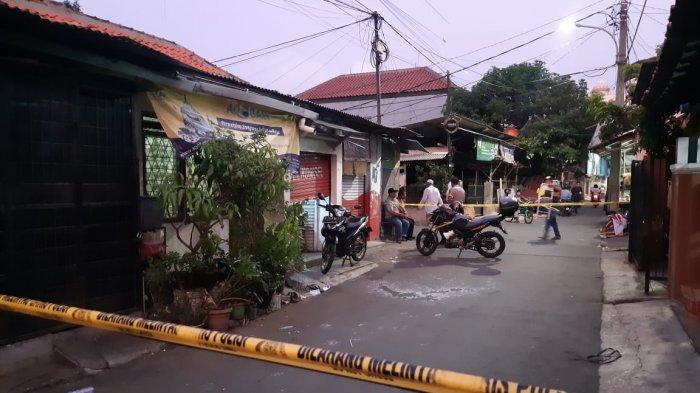 Pantauan TribunJakarta.com Pukul 18.20 WIB, garis polisi telah dipasang hingga radius sekira 50 meter dari lokasi kejadian yang berada di depan sebuah warung dan rumah warga.