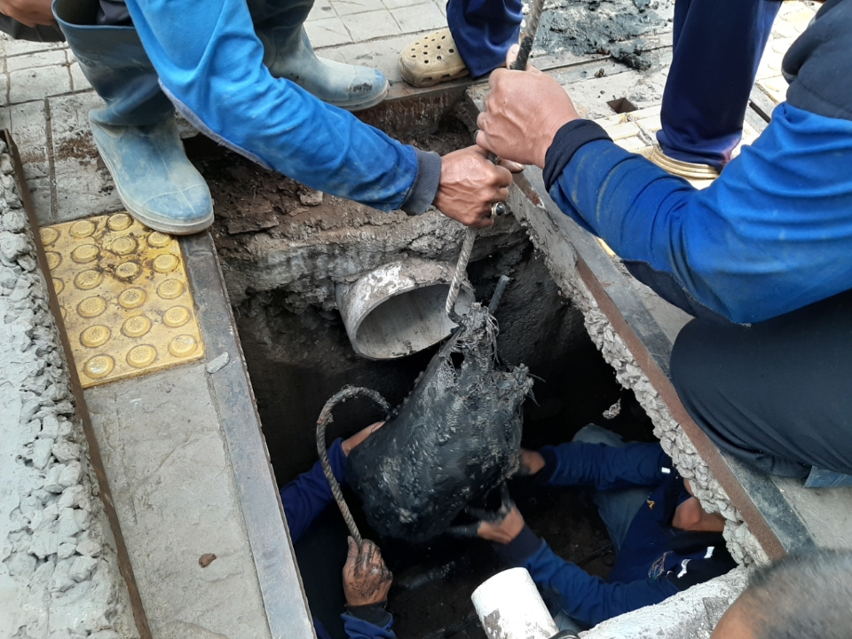 Saat ini, petugas Sudin SDA Jakarta Selatan masih melakukan pencarian karung berisi lumpur lainnya di dalam gorong-gorong.
