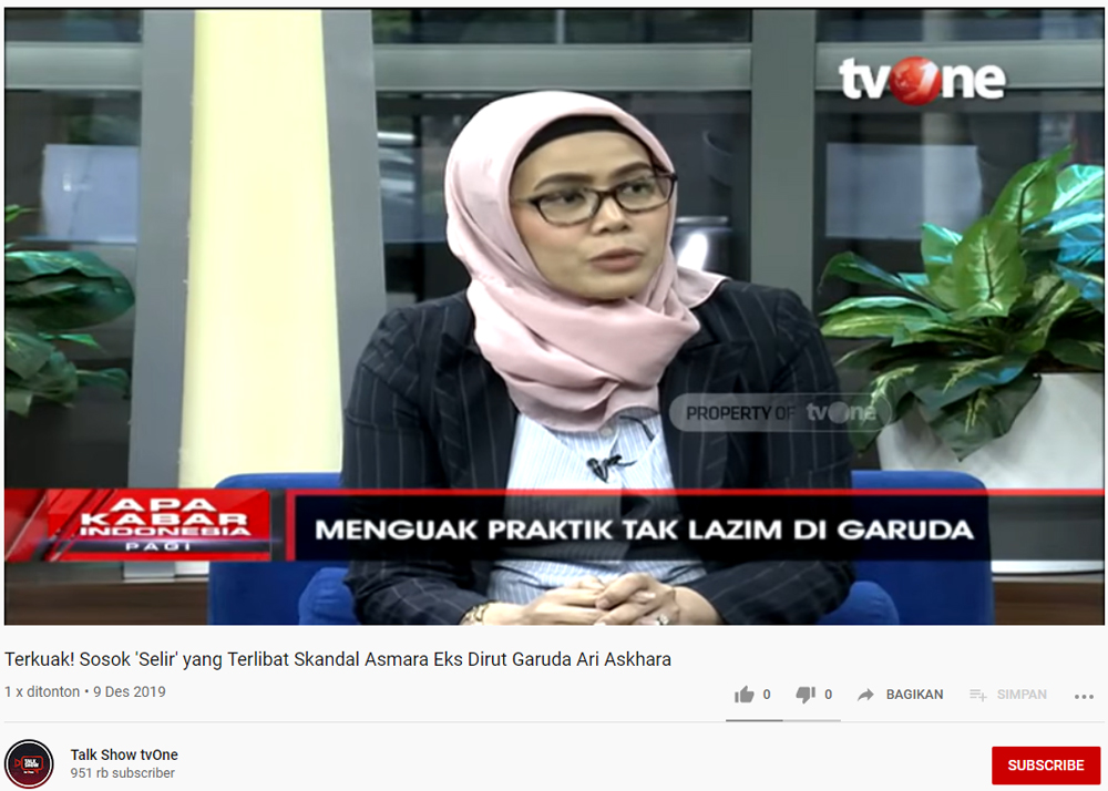 "Dari segi kepemimpinan Dirut Garuda yang kemarin baru dicopot oleh Menteri BUMN, Mbak Yosephine sendiri ngelihatnya gimana?" tanya sang presenter.