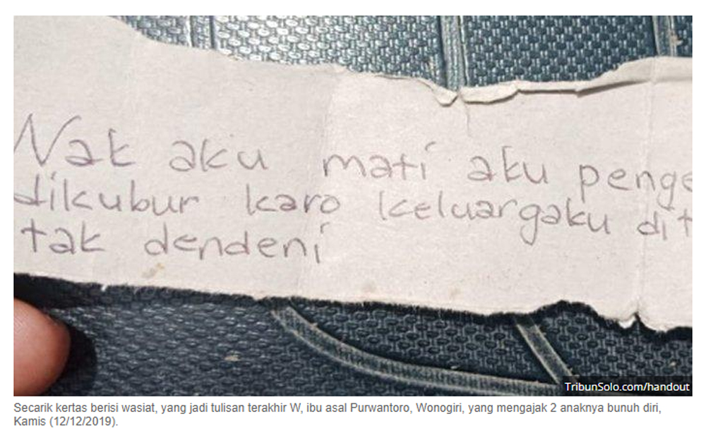 Termasuk motif Winarsih bunuh diri dan mengajak anaknya melakukan hal serupa.