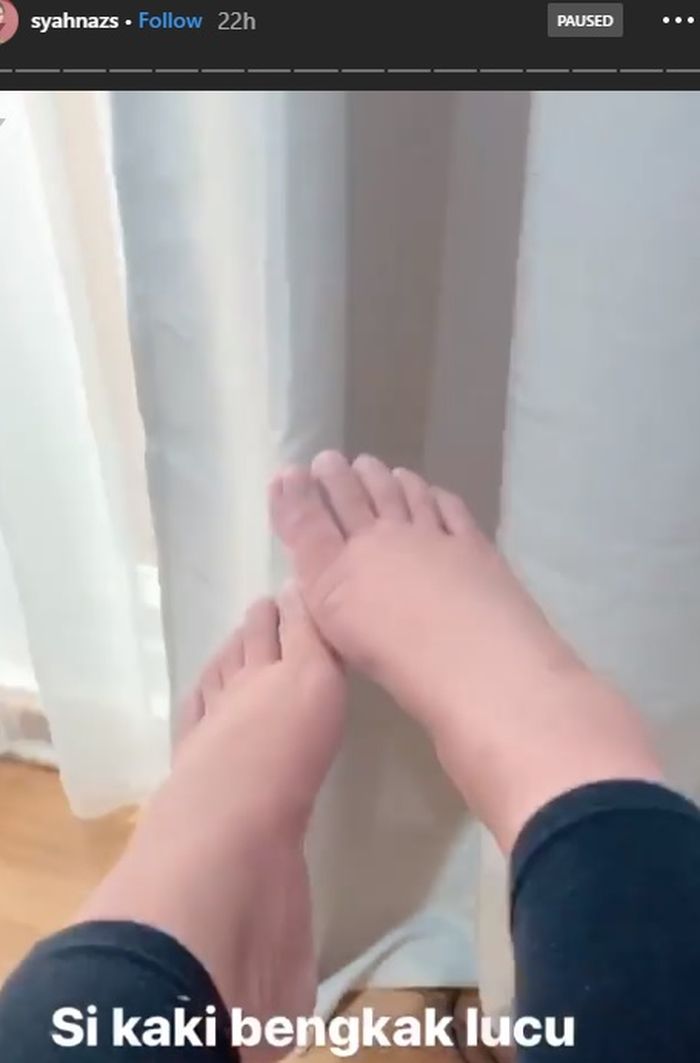 "Si kaki bengkak lucu," tulis Syahnaz.