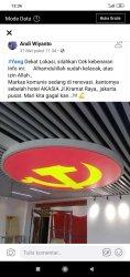 Pengamatan TribunJakarta.com, foto yang diunggah pada 31 Mei, pukul 11.34 WIB ini menampilkan ruangan yang tedapat gambar 'palu-arit' berlatar belakang merah.