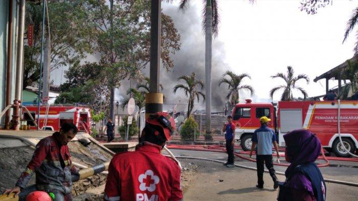 Terlihat kepulan asap hitam masih membumbung tinggi di lokasi kejadian Jalan Gatot Subroto Kilometer tujuh Kota Tangerang.