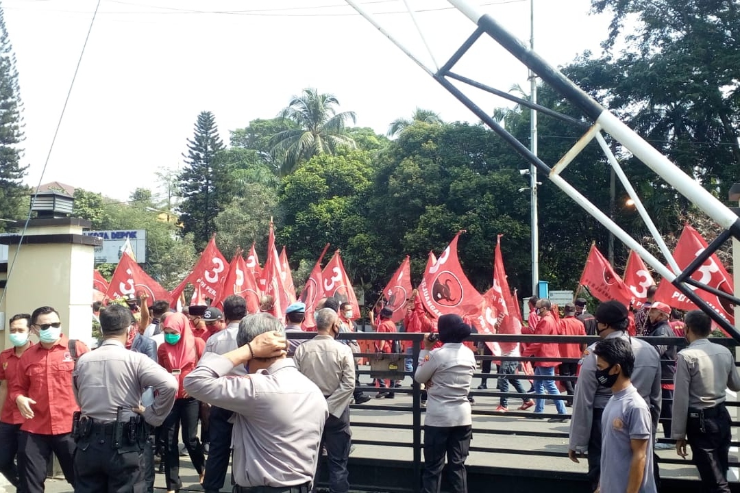 TRIBUNJAKARTA.COM, PANCORAN MAS - Kasus pembakaran bendera PDI Perjuangan saat unjuk rasa di Gedung DPR RI beberapa hari lalu berimbas juga di Kota Depok, Jawa Barat.