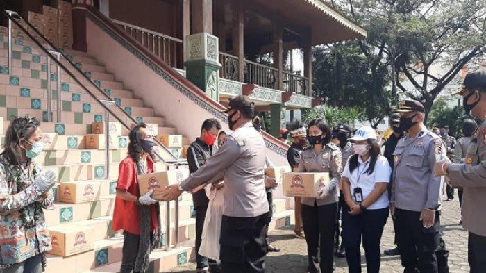 Guna meringankan beban masyarakat yang terdampak Covid-19, Polri menggelar bakti sosial serentak di Indonesia berupa pembagian sembako