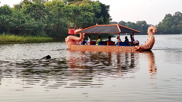 TRIBUNJAKARTA.COM, BEJI – Menggunakan perahu naga yang merupakan fasilitas rekreasi, sejumlah orang nampak mendatangi lokasi jatuhnya helikopter di Danau Buperta, Harjamukti, Cimanggis, Kota Depok.