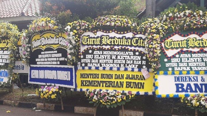 Di sisi lain, karangan bunga ucapan turut berduka cita dari Presiden Joko Widodo terpajang di sisi ruang persemayaman Elisye Widya Ketaren, istri dari Menteri Hukum dan HAM RI, Yasonna H Laoly.