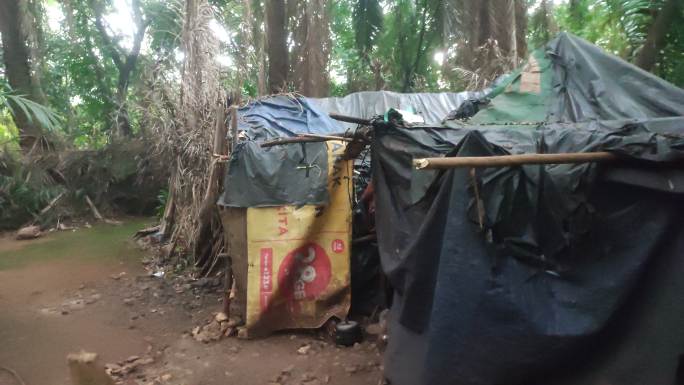 Lantaran kehabisan biaya, ia terpaksa mendiami lokasi tersebut setelah sempat mengontrak rumah di kawasan Gongseng, Pasar Rebo, Jakarta Timur.