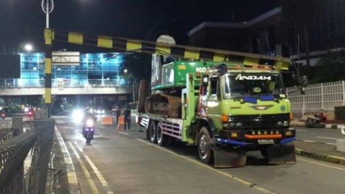 Brak! Truk Pengangkut Crane Tabrak Portal Pembatas Underpass Pondok Indah