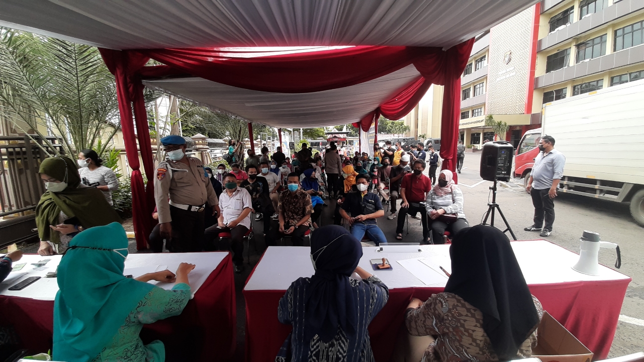 Pantauan TribunJakarta.com, puluhan warga telah mengantre sejak pukul 08.00 WIB.