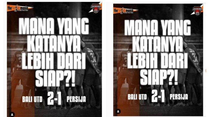 Mana yang katanya lebih dari siap @persija ?," tulis Jakmania di akun Instagramnya usai laga Persija vs Bali United.