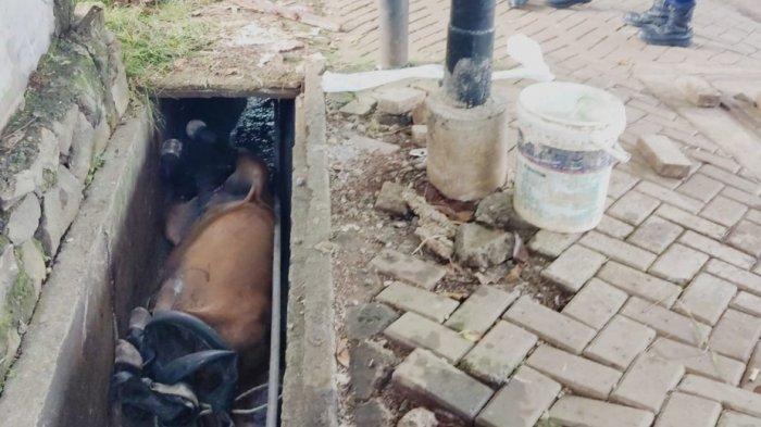 Kud itu tercebur ke selokan yang ada di depan bengkel. Pemilik bengkel kemudian melaporkan kejadian itu ke pos Damkar.