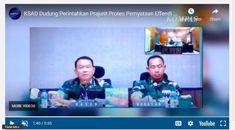 “Jadi supaya tidak berkepanjangan saya rasa baiknya pimpinan komando tertinggi Bapak Panglima supaya mengademkan suasana,” jelasnya.