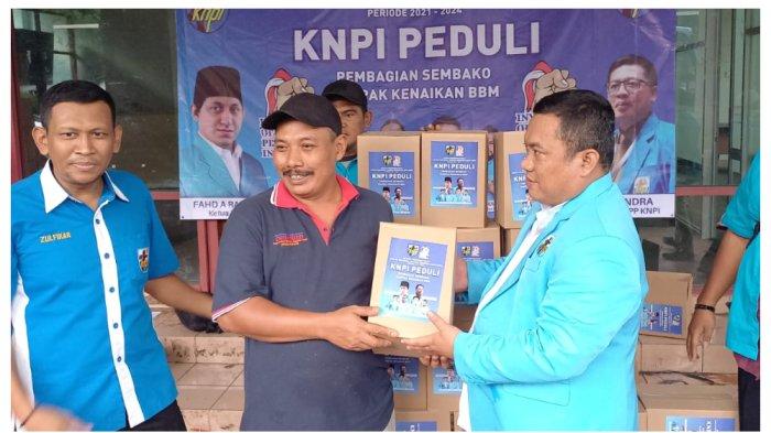 DPP KNPI memberikan paket sembako kepada masyarakat yang terdampak kenaikan harga Bahan Bakar Minyak (BBM), Jumat (16/9/2022).