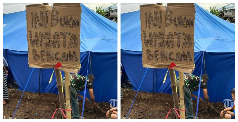 Bukan tanpa alasan korban gempa Cianjur di sana menuliskan tulisan "Ini bukan wisata bencana".