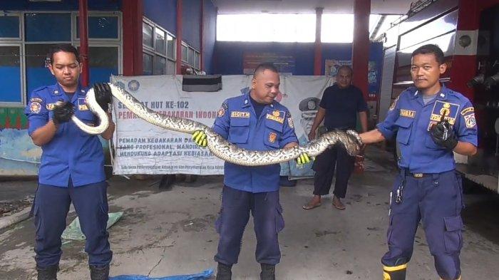 Setelah ditangkap, ular sanca ini langsung dibawa ke kantor pemadam kebakaran dan selanjutnya akan ditangani lebih lanjut.