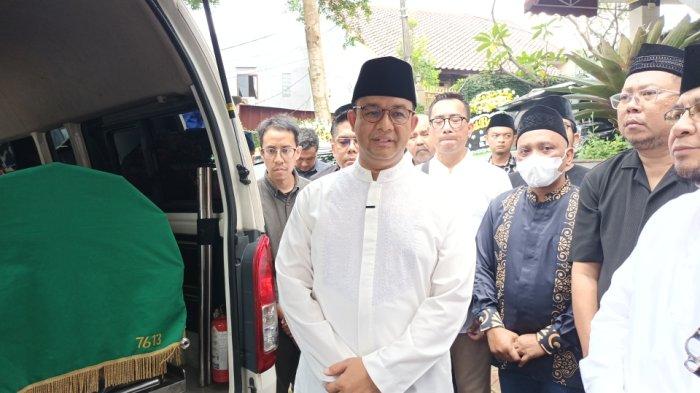 Anies tiba sekira pukul 11.00 WIB di rumah duka Mohamad Taufik, Wisma Garuda, Jalan SD Lama, RT 04/RW 01, Kelurahan Pondok Ranggon, Kecamatan Cipayung, Jakarta Timur.