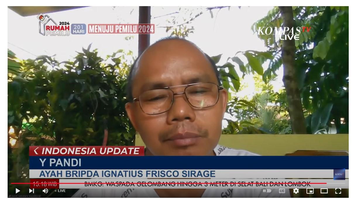 Saat menjadi narasumber di Kompas TV, Pandi dengan tegas mengatakan pada Minggu (23/7/2023) pukul 01.40 WIB, Bripda Ignatius didatangi oleh tiga orang seniornya, di kamarnya di Rusun Polri Cikeas, Gunung Putri, Bogor, Jawa Barat.