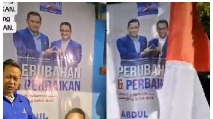 ewan Pimpinan Cabang (DPC) Partai Demokrat Kota Bekasi gerak cepat turunkan baliho, spanduk atau banner bergambar Anies Baswedan.