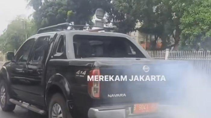 Dalam rekaman video, mobil Nissan Navara itu memiliki pelat nomor B 9041 PSD.