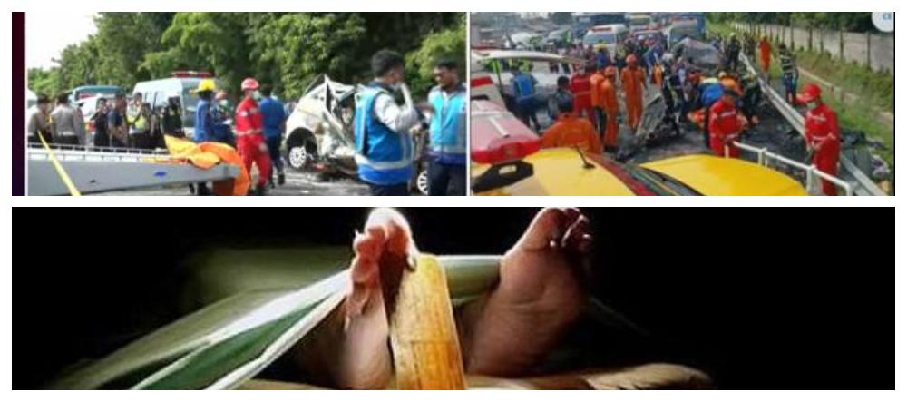 Kemudian dari arah berlawanan dari arah ke Jakarta datang sebuah bus dan terjadilah tabrakan.