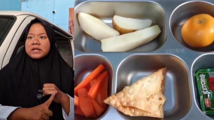 Warganet mempertanyakan kualitas kandungan gizi yang dikonsumsi oleh anak-anak, karena berisi tiga potong kentang rebus, wortel kukus, pangsit goreng, jeruk, dan saus.