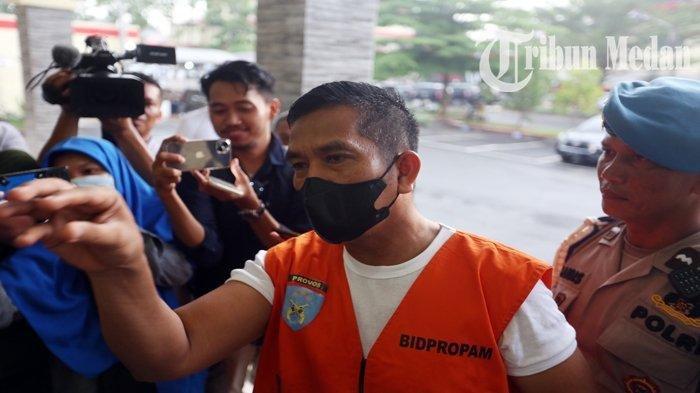 Gaya AKBP Achiruddin Hasibuan saat dikawal Prompam Polda Sumut tampak tak diborgol dan bersandal jepit saat menjalani pemeriksaan, Kamis (27/4/2023).