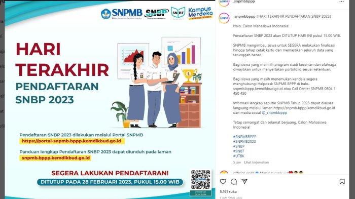 Segera daftar dan jangan sampai terlewat! Hari terakhir pendaftaran SNBP 2023, pendaftaran ditutup sore ini pukul 15.00 WIB.