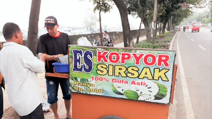 Pedagang ES Kopyor di Jalan Daan Mogot, Lokasi Favorit Pengendara Sepeda Motor Beristirahat