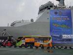 Ribuan pemudik mengikuti program mudik gratis yang diselenggarakan TNI Angkatan Laut dengan kapal perang.