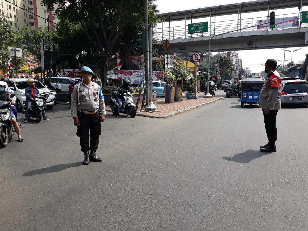 Petugas Polsek Jatinegara Ajak Pengguna Jalan di Cawang Berhenti, Peringati Detik-Detik Proklamasi